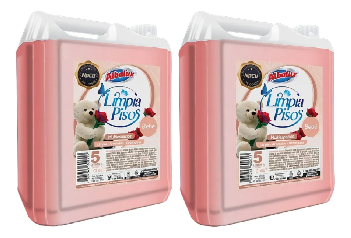Descubre el Pack 2 de Aromatizador Limpia Pisos Bebé de 5 litros cada uno, una solución ideal para mantener tu hogar limpio y fresco. Este producto de la reconocida marca ALBALUX cuenta con una fórmula delicada que emana una fragancia suave, perfecta para hogares con niños pequeños. Su diseño en botella facilita su uso y almacenamiento, asegurando que siempre tengas a mano un limpiador eficaz. Además, este limpiador es desinfectante, lo que garantiza una limpieza profunda y segura en todas las superficies de piso. Con un volumen de 5 litros por botella, este pack es perfecto para quienes buscan un producto de calidad que combine efectividad y suavidad, cuidando el bienestar de toda la familia. Mantén tus espacios limpios y agradables con el Limpia Pisos Bebé, un aliado indispensable en la limpieza del hogar.