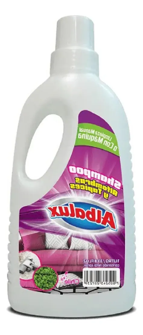 Descubre el Shampoo Alfombra Albalux de 1 Litro, un producto de alta calidad diseñado específicamente para la limpieza de alfombras y tapices, tanto sintéticos como naturales. Su fórmula de alta espuma garantiza una limpieza profunda y eficaz, eliminando manchas y suciedad de manera efectiva. Este limpiador es ideal para su uso manual, así como con máquinas formadoras de espuma o rodillos externos (pads), lo que lo convierte en una opción versátil para cualquier hogar. Presentado en un práctico envase de botella, su volumen neto de 1 litro asegura que tendrás suficiente producto para múltiples aplicaciones. La marca ALBALUX es sinónimo de confianza y calidad, y este shampoo no es la excepción. Mantén tus alfombras y tapicerías en perfecto estado con este limpiador líquido, que promete resultados excepcionales en cada uso. ¡Transforma la limpieza de tu hogar con el Shampoo Alfombra Albalux!
